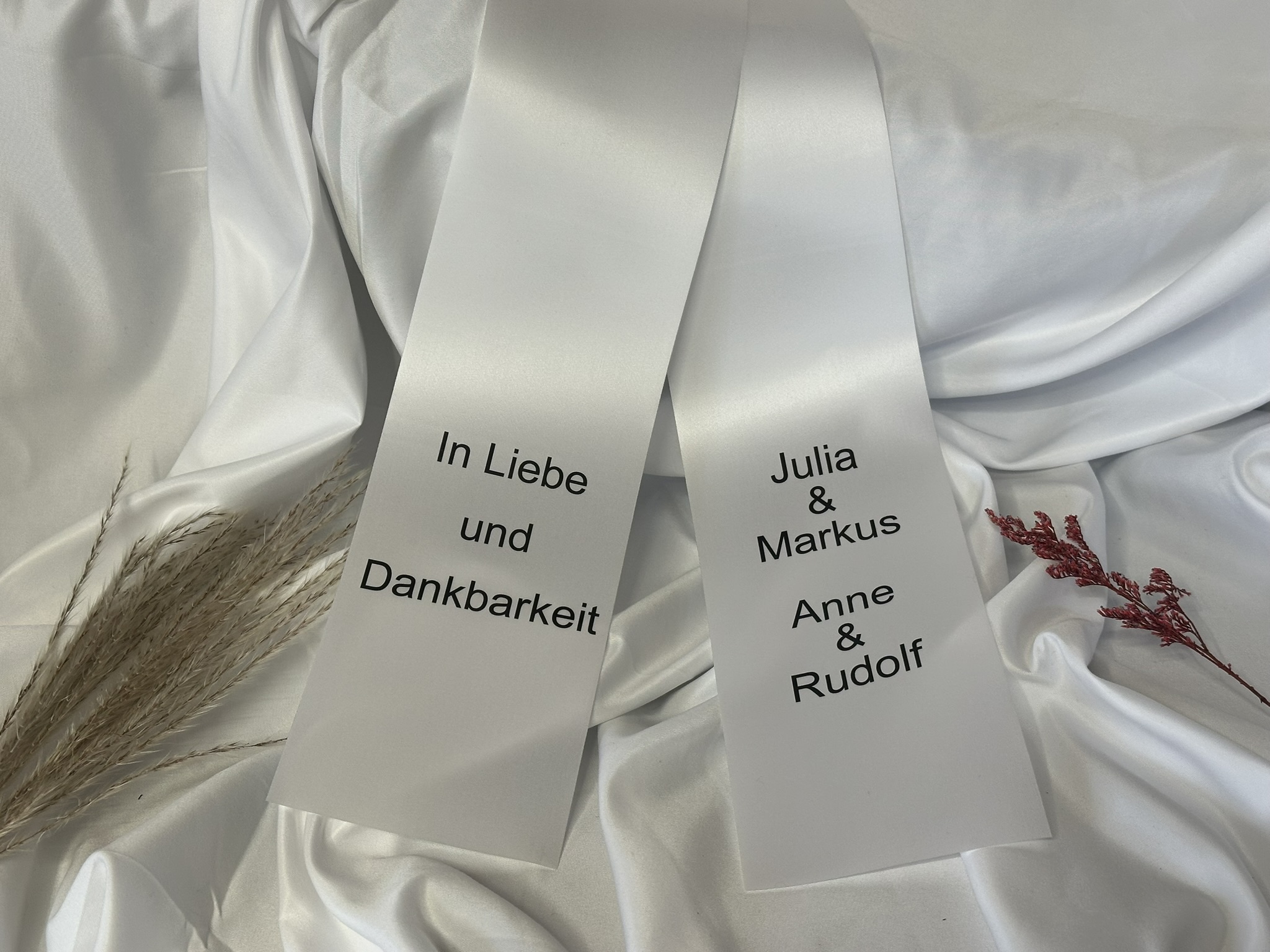 Schleife 1: Text, Schriftart, Motiv / Schleife 2: Text, Schriftart, Motiv